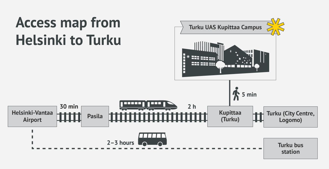 Please note that if you are staying next to the venue at Kupittaa Sokos Hotel, there is a train station practically at the hotel. If this is the case, you should get off at Kupittaa (not at Turku train station).