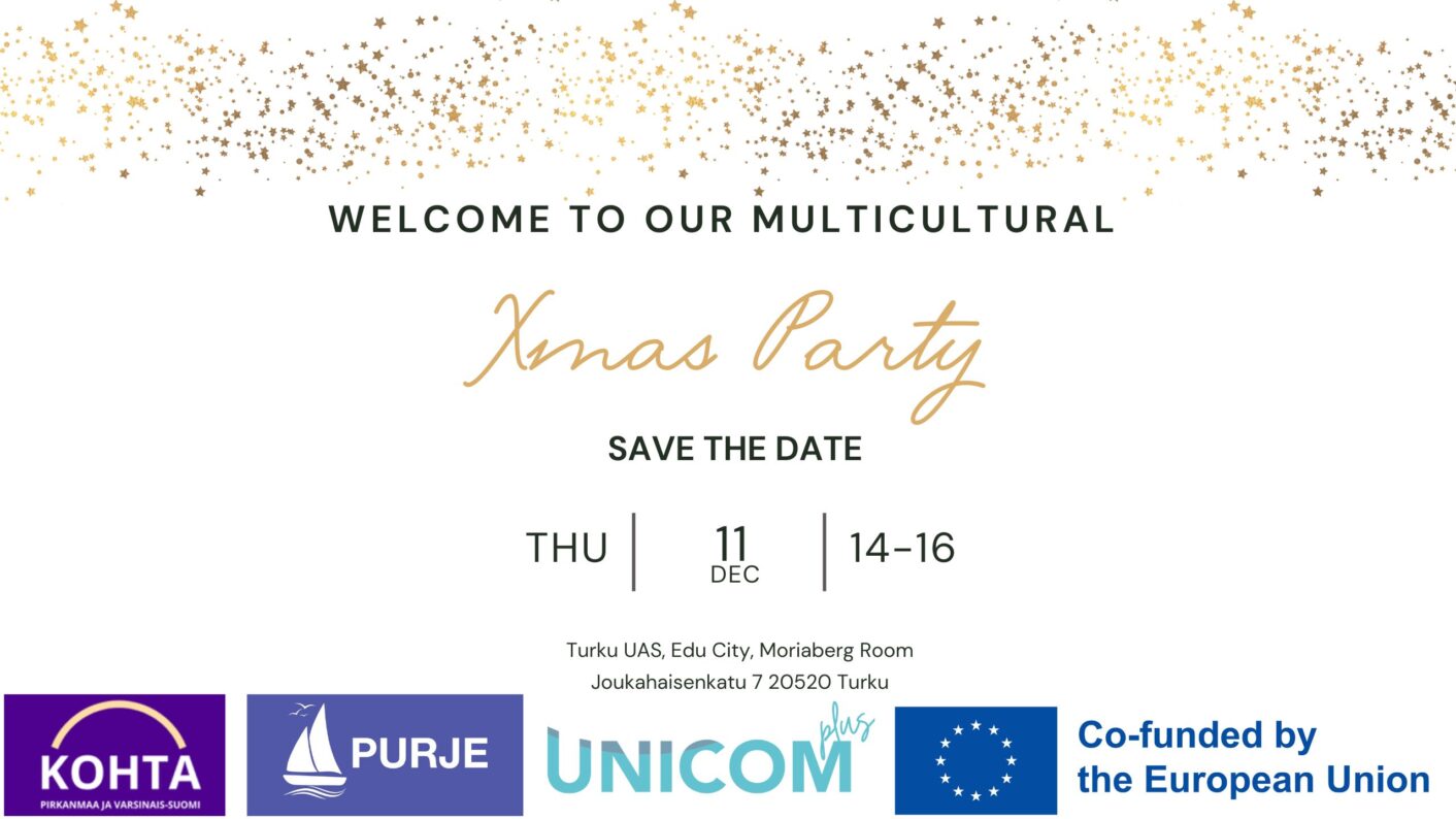 Unicom Plus, Purje and Kotha projects warmly welcome students and company representatives to the Multicultural Christmas Party – an event that brings together people from different backgrounds to celebrate diversity and Finnish Christmas traditions.