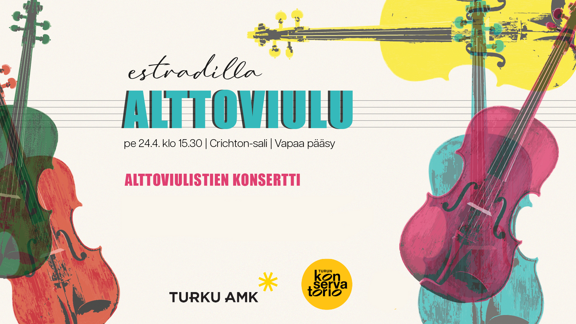 Estradilla alttoviulu -konsertissa kuullaan Riihimäen musiikkiopiston, Turun konservatorion, Turun AMK:n Taideakatemian sekä Metropolia AMK:n alttoviulistien esityksiä.