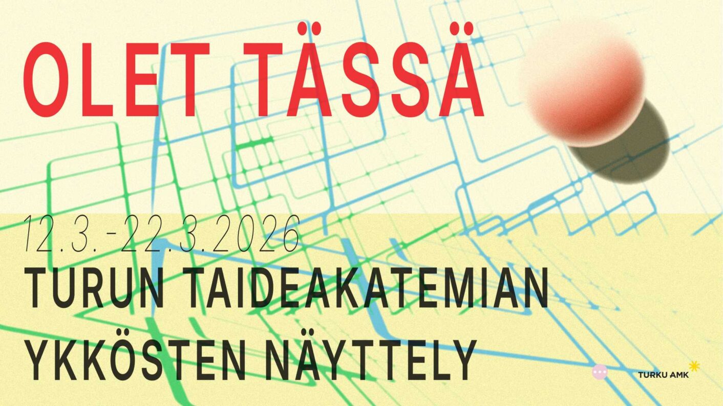 Turun Taideakatemian ensimmäisen vuosikurssin kuvataiteen opiskelijoiden Olet tässä -ryhmänäyttely valtaa Köysiratagallerian 12.-22.3.2026.